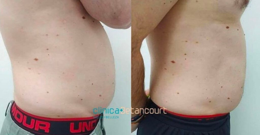 Las áreas más tratadas en clínica Betancourt son sin duda abdomen y franco, ambas con excelentes resultados. También podemos tratar con la Criolipólisis muslos, brazos, rodillas o papada.